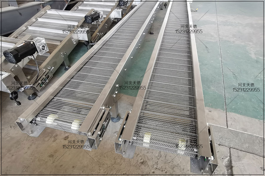 茅臺生產(chǎn)線網(wǎng)帶輸送機是采用循環(huán)往復(fù)式的傳動鏈條做為牽引帶電力能源,以鏈板輸送機為輸送的一種輸送機械設(shè)備。網(wǎng)帶輸送機主是由驅(qū)運作能組織、牽此 鏈、呂 板、推動及調(diào)向鏈輪鏈條、聲卡機架等部分產(chǎn)生,擁有輸送才能大、好用范圍廣等特性。網(wǎng)帶輸送機除開黏度尤其大的原材料以外,某些固體原材料跟整 件物 均很有可能用網(wǎng)帶輸送機開展輸送,尤其是飲品領(lǐng)域之中用于輸送各種PET瓶利用的更加廣泛。 茅臺生產(chǎn)線網(wǎng)帶輸送機因其本身的構(gòu)造的尤其性,進而提高了輸送媒介的抗壓強度及可利用性,無論是在總寬上或是在長度上面完畢無前提條件的跳軸。與此同時網(wǎng)帶 輸送機的隔板與檔板也都很有可能完畢固接銷自鎖互鎖,變成輸送媒介的總體構(gòu)件之一。網(wǎng)帶輸送機很有可能開展分成碳素鋼、不銹鋼板及輪胎防滑鏈板等,倘 若所需網(wǎng)帶輸送機需要來選擇不一樣的總寬、不一樣的外觀設(shè)計的鏈板輸送機來完成平面圖輸送、平面轉(zhuǎn)向、升職及著陸等很多的乞求。