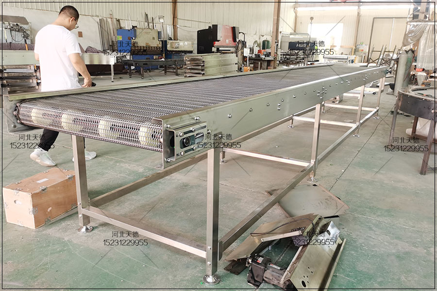 7.食品網(wǎng)帶輸送機可靠性高。結(jié)構(gòu)簡樸,運動部件自重輕,只要金屬網(wǎng)帶不被撕破,壽命可長達(dá)十年之上,而金屬結(jié)構(gòu)部件,只要防銹好,幾十年也不壞。