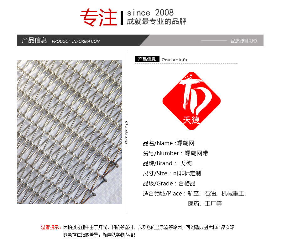 螺旋網帶:使用曲軸或直軸串條將左旋和右旋繞絲串起來形成平衡編織。