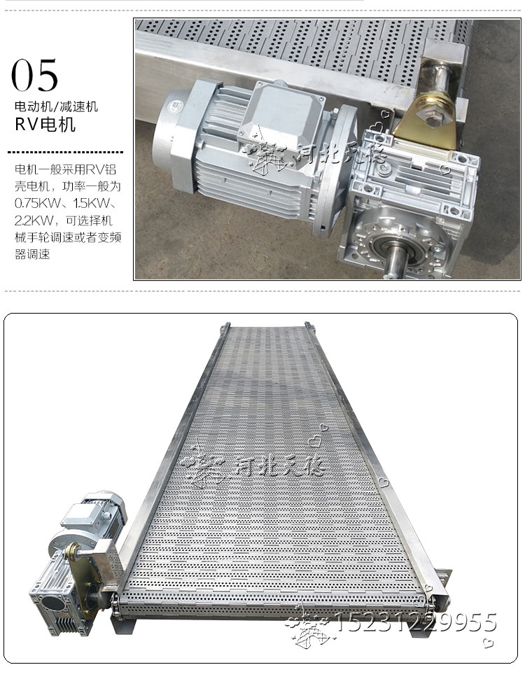 作為合頁鏈板輸送機使用的大市場就是速凍領域,速凍領域中果蔬速凍可以說是多的使用行業。果蔬速凍所使用的鏈板式輸送機規格型號比較常規,全部304或316不銹鋼結構;節距31.75mm或38.1mm;厚度1mm~1.5mm;寬度300mm-900mm;一般沖孔3mm~4mm,這種規格的鏈板輸送機適應果蔬的輸送和速凍作業。